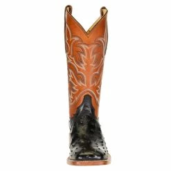 Justin Boots Men’s Pascoe Black Full Quill Ostrich 13in. Rebel Suntan Top Cowboy Boots