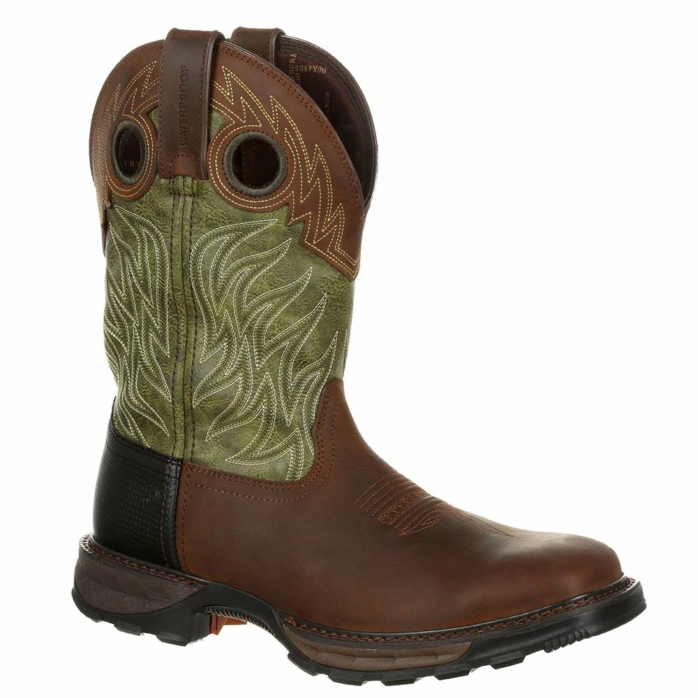 This is the men’s 11″ Western Waterproof Oiled Brown/Forest Green Durango® Maverick XPâ„¢. This style has a full-grain leather vamp, collar and pull straps with a faux shaft. Inside it has soft mesh lining and a Durango® Waterproof membrane bootie to keep your feel dry all day long. It has the Durango® X-Pand Systemâ„¢ which is a hidden gore expansion on the inside medial seam for a universal fit and easy on/off. It also has the Durango X-Treme Comfort footed with Memory Foam for all day comfort and support.