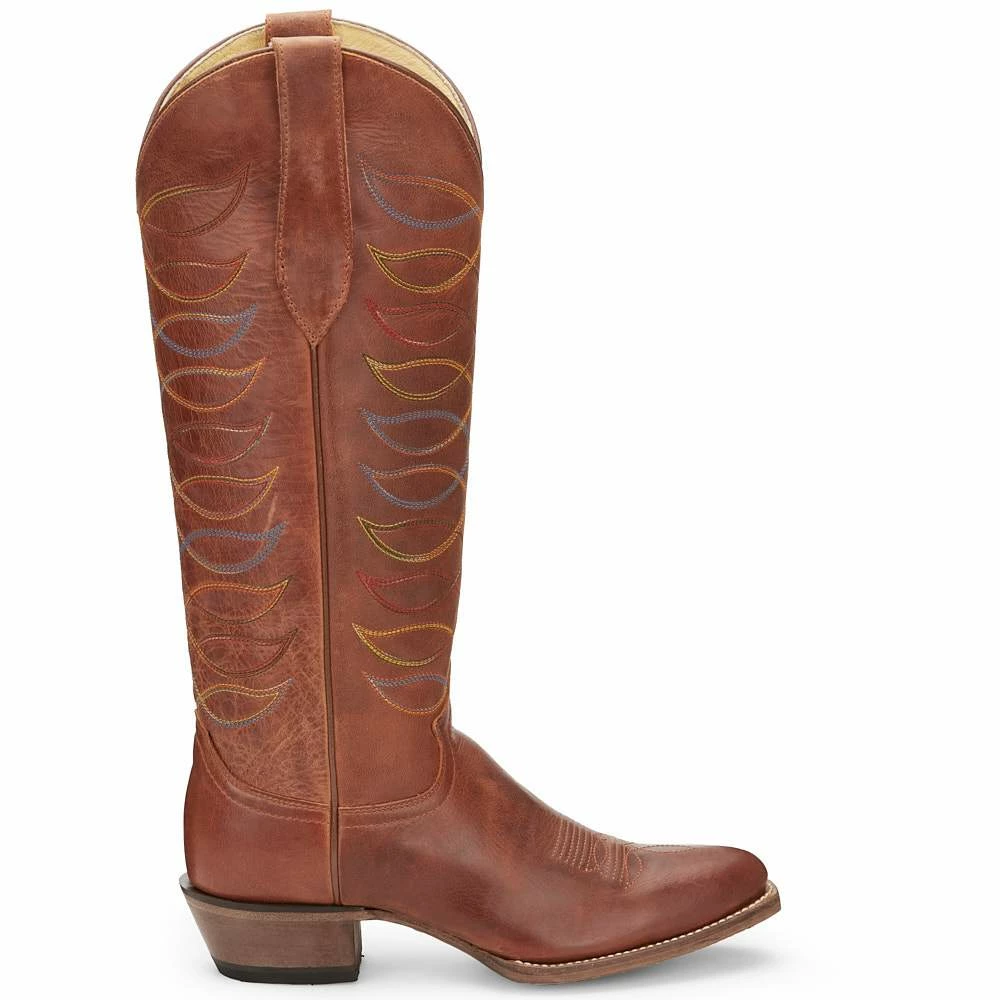 Inspired by some of Justins favorite 1970s and 80s styles from the Justin archives, the gorgeous 15” Whitley boot from Justins Vintage collection features beautiful rustic amber leather that’s embroidered with vibrant multi-color threads. It’s designed with a medium round toe, a cowgirl underslung heel and features our J-Flex Comfort System® insole for feel-good comfort and support. This striking throwback style celebrates Justin Boots rich bootmaking heritage and will make a stunning foundation for any look.