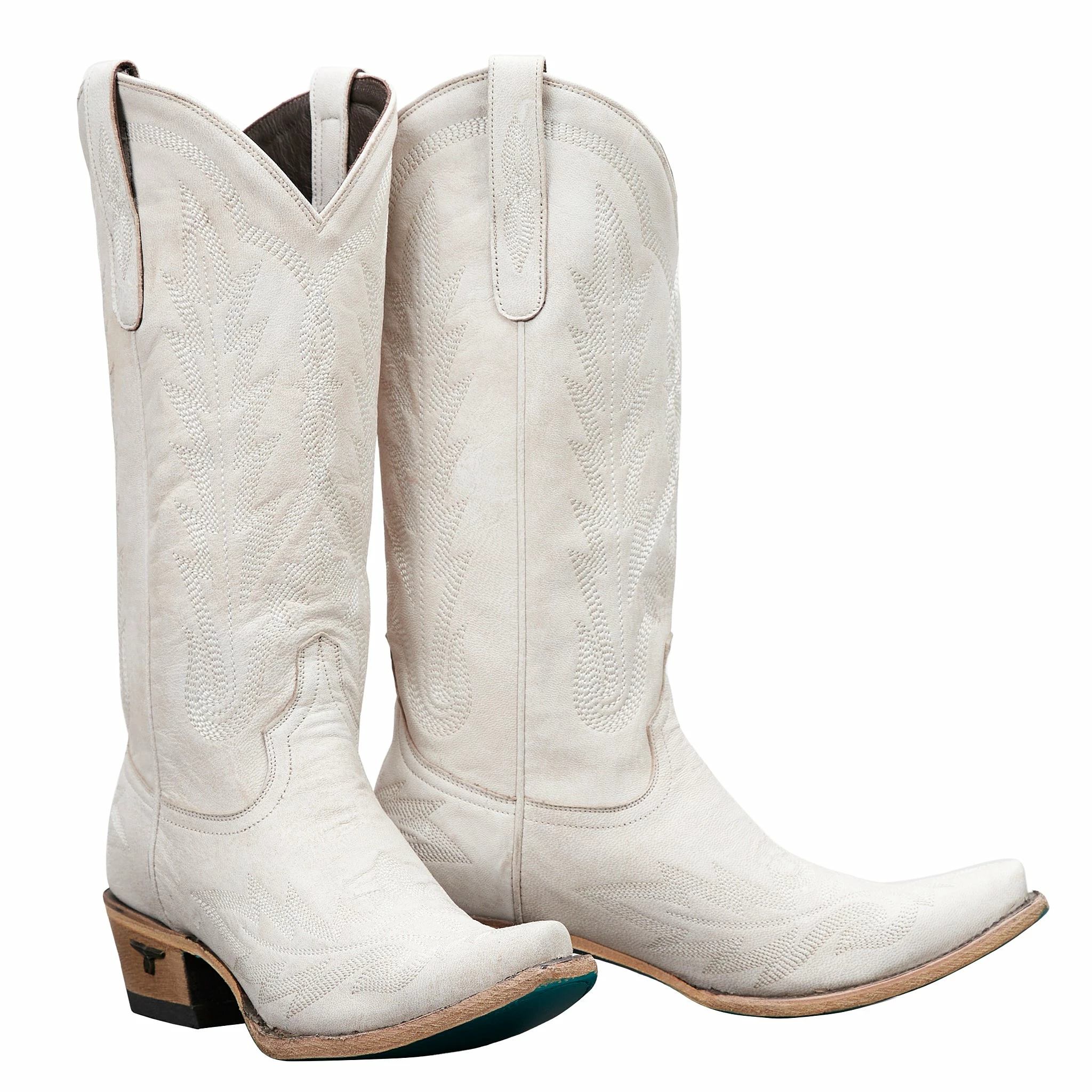 Heirloom quality boots with a core western influence. The classic snip toe profile is embroidered to perfection with a twist on traditional flame stitch. Ceramic crackle finish makes this a perfect fit for weddings to girl’s night out.