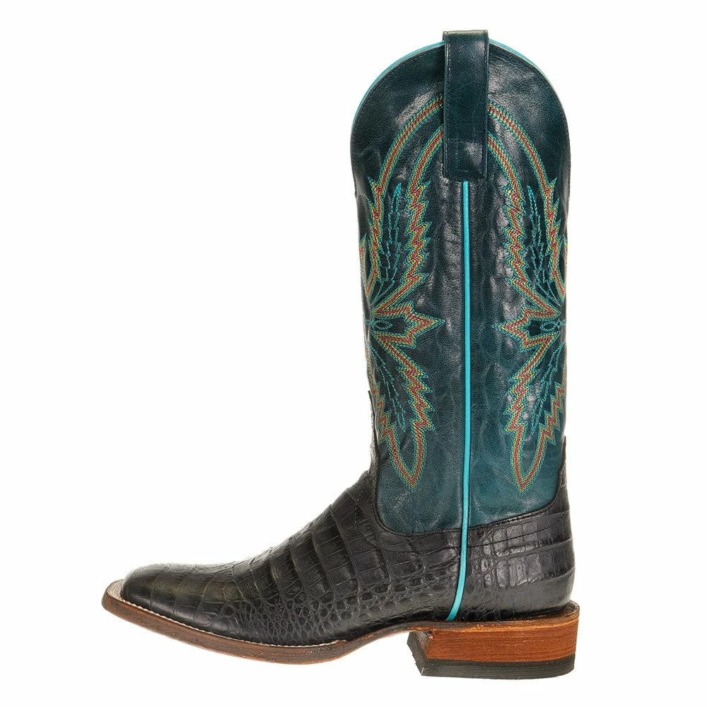 R Watson Boots Men’s Black Boar 11in Barn Red Cowhide Top Square Toe Boot