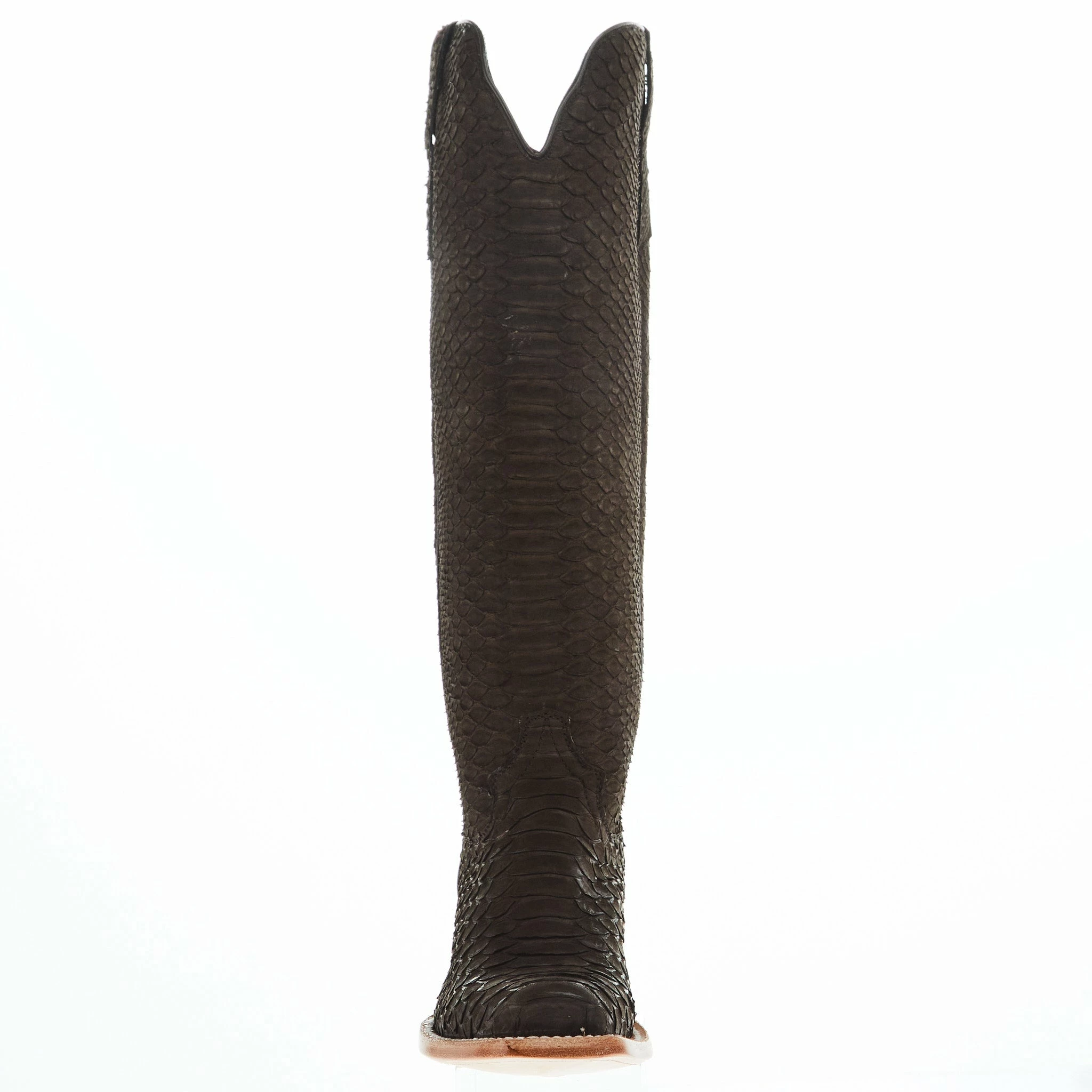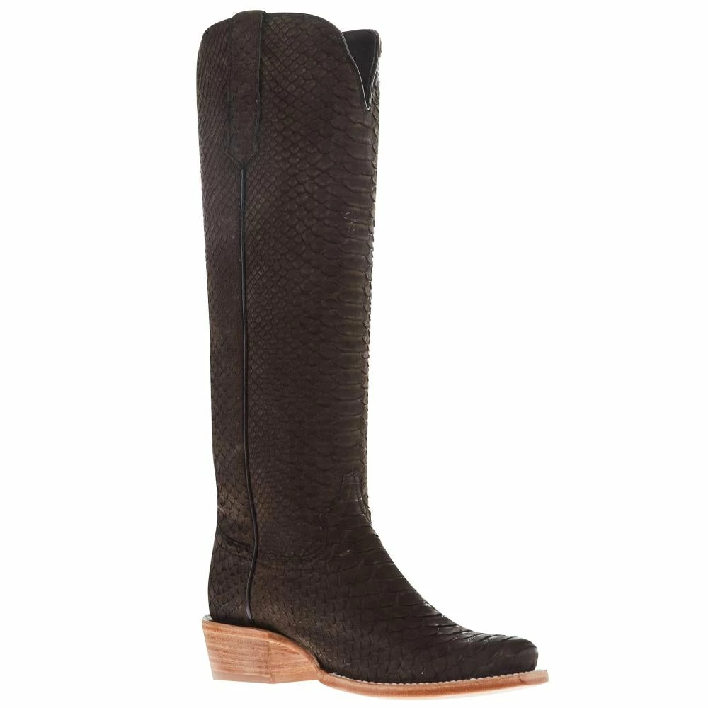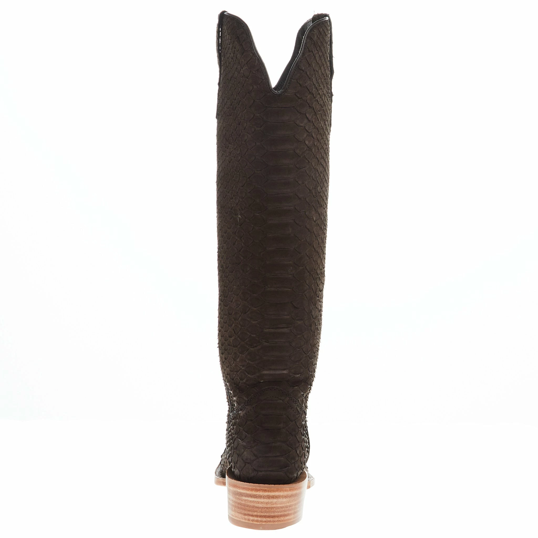 R. Watson presents these Chocolate Nubuck Python western boots. These boots have a 10 row stitch pattern, R. Watson comfort system, all leather stacked heel, counters, solid steel shank, and 10 iron outsole. All around boot for dress, chores or showing in the arena.